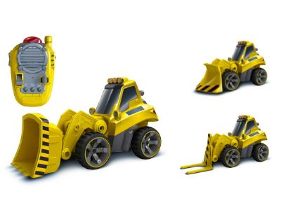 Tämä on kone. Varustettu vaihdettavalla etuhaarukalla. Puskee, nostaa ja kuljettaa.